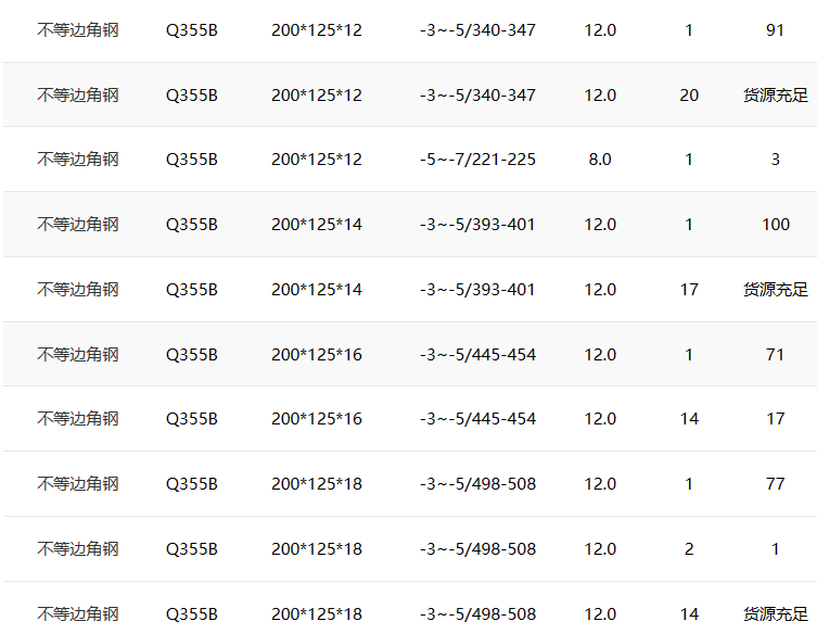 Q355B不等邊角鋼200*125*18現(xiàn)貨