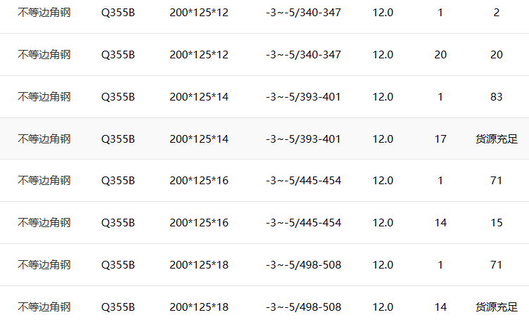 鋼結構用Q355B不等邊角鋼200*125*16現(xiàn)貨供應