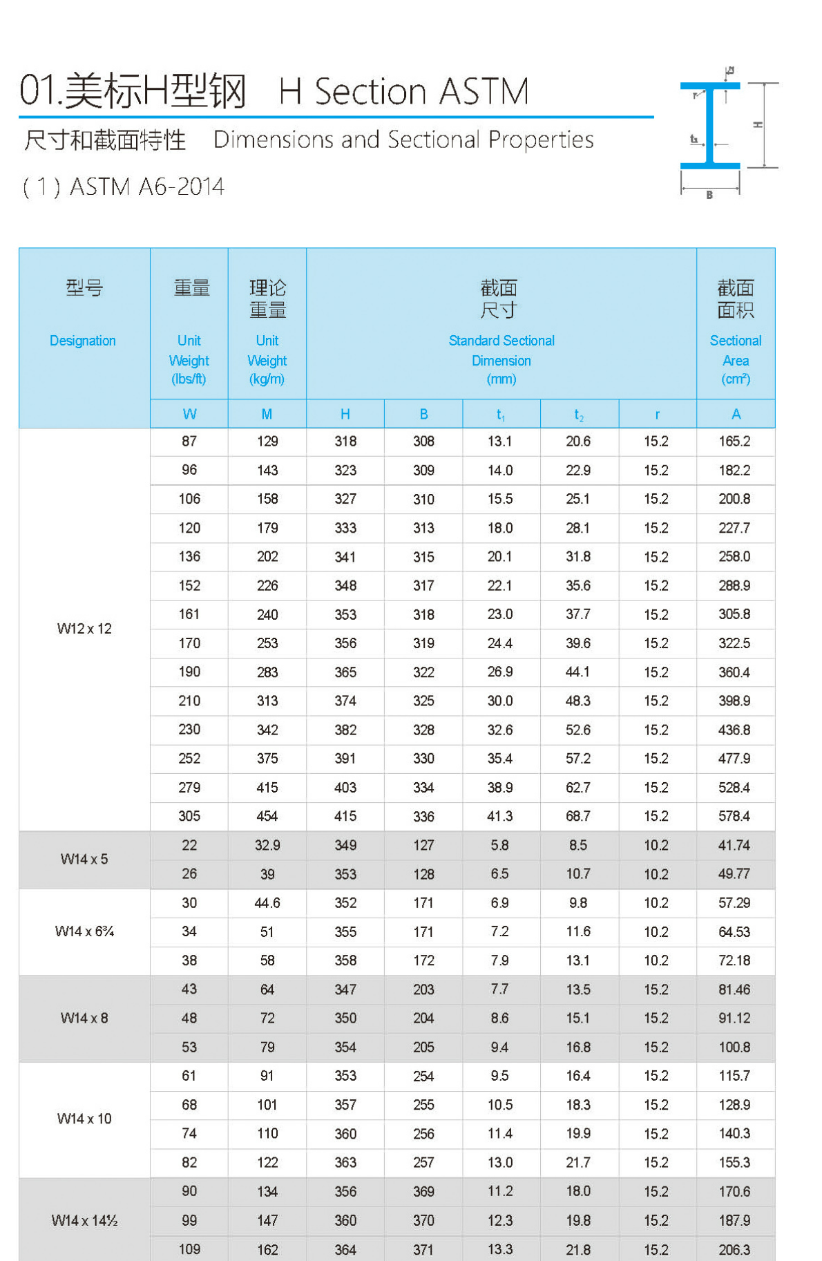 / 型材知識(shí) / 美標(biāo)A572GR50-H型鋼規(guī)格尺寸重量表